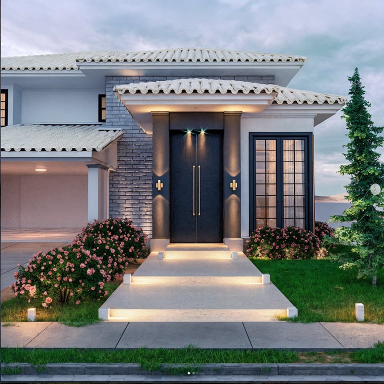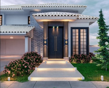 O ponto focal de toda a narrativa arquitetônica reside, inegavelmente, em sua entrada principal. Este acesso não é apenas um meio de passagem; ele serve como um verdadeiro portal para o glamour, uma transição dramática que antecipa o requinte encontrado no interior. Para estabelecer este impacto inesquecível, fizemos uma escolha ousada e precisa que se manifesta no jogo de contrastes: