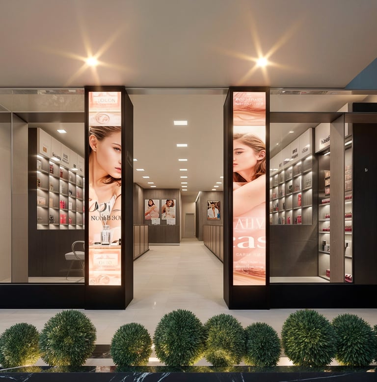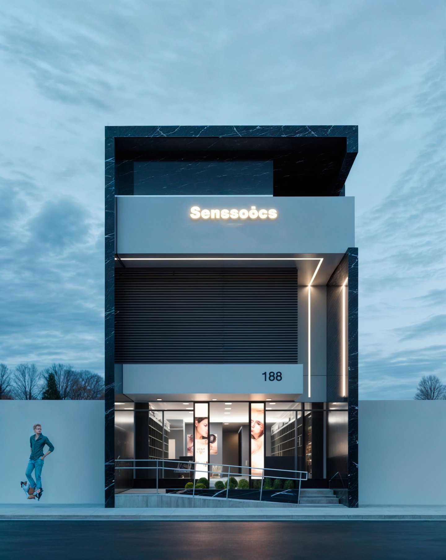 Implantada em uma região central, onde a arquitetura precisa disputar atenção em meio ao fluxo intenso da cidade, esta perfumaria se posiciona com uma linguagem forte, elegante e absolutamente intencional. O projeto parte de uma diretriz clara da cliente: trabalhar uma coloração marcante baseada no contraste entre preto e branco — e é justamente nessa dualidade que reside sua força estética e identidade.