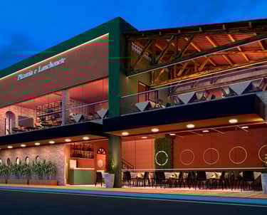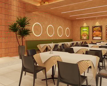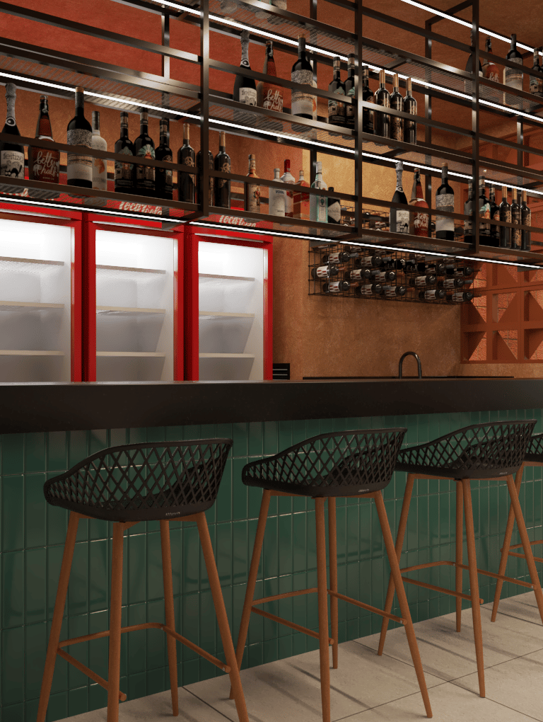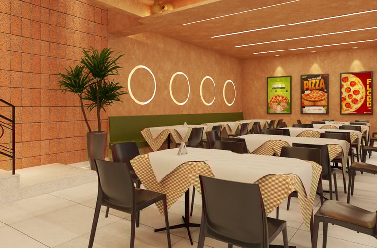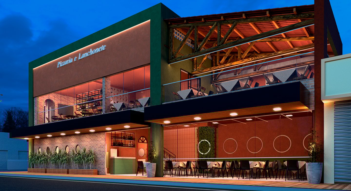 A arquitetura desta pizzaria se constrói a partir de uma combinação precisa entre acolhimento, identidade visual marcante e uma volumetria bem resolvida, capaz de dialogar com o espaço urbano e, ao mesmo tempo, criar uma atmosfera convidativa para o usuário.